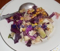 2φλ.κόκκινο λάχανο ψιλ/νο 1φλ.λάχανο ψιλ/νο 1/3φλ.σέλινο ψιλ/νο 1/2φλ.καλαμπόκι κονσέρβας Λάδι Ξύδι 2κ.σ.μέλι 1κ.σ.μουστάρδα Ντιζόν 1/2κ.γλ.ζάχαρη Αλατοπίπερο