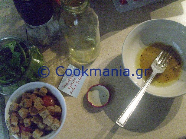 Ντοματίνια σαλάτα με κρουτόν και ότι άλλο θέλουμε