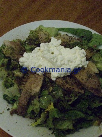 Πράσινη σαλάτα με χοιρινό και cottage cheese