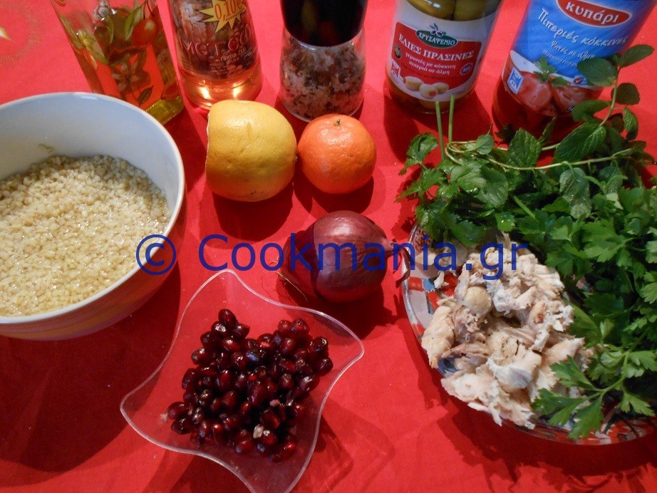 Ταμπουλέ με κοτόπουλο και φρούτα