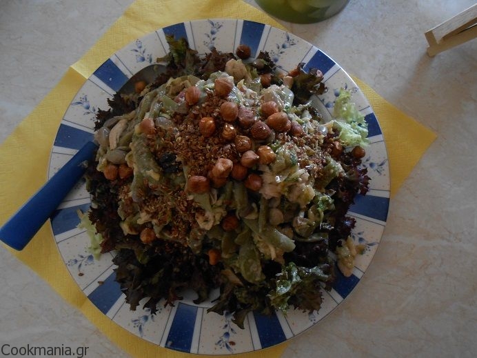 Φασολάκια και κολοκυθάκια σαλάτα με dressing ταχίνι