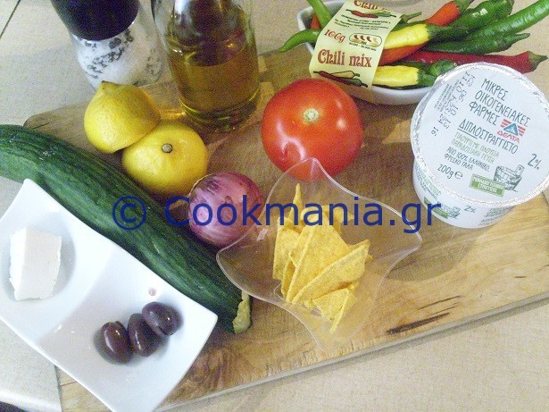 Πράσινη σαλάτα και nachos για το σερβίρισμα