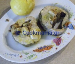 1μεγάλος μπακαλιάρος (800γρ.) κομμένος σε ροδέλες Λάδι Αλατοπίπερο Ξύσμα 1 λεμονιού Χυμό 1 λεμονιού 3σκελ.σκόρδο 1κ.σ.μουστάρδα
